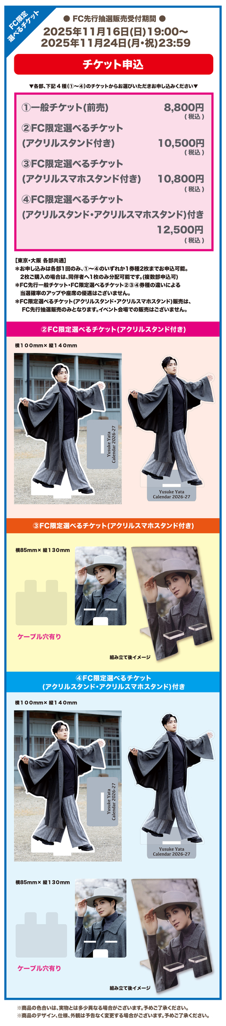 ★『矢田悠祐2026-27年カレンダー』グッズに関しては、11月25日(火)から予約販売開始(予定)させていただきます。